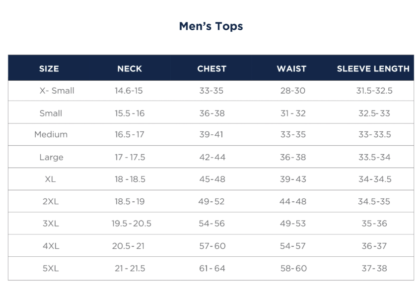 | PRODUCT SIZES | SM-5XL Adult Men’s Sizing |