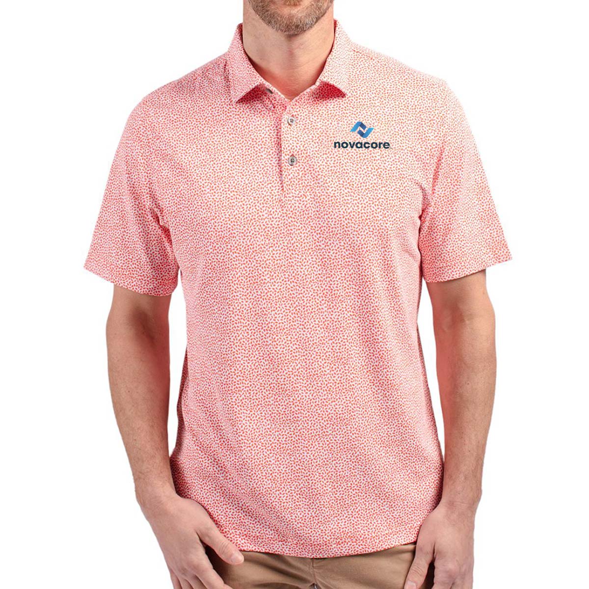 Ultra-lightweight, high quality, certified eco-friendly recycled drytec polyester is blended with spandex for stretch, a cooling effect, and UPF sun protection, resulting in the most versatile, sustainable, and comfortable print polo for you and the planet.