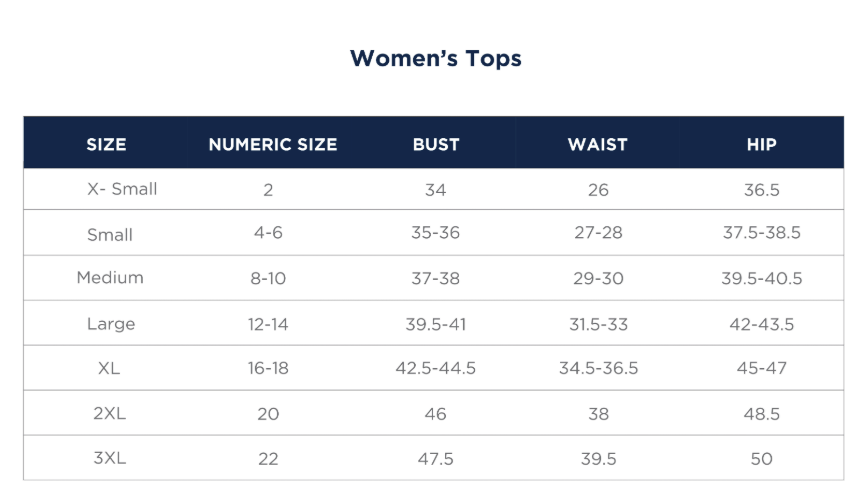 | PRODUCT SIZES | XS-3XL Adult Women’s Sizing |