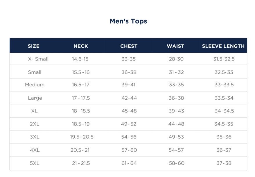 | PRODUCT SIZES | S-5XL Adult Men’s Sizing |
